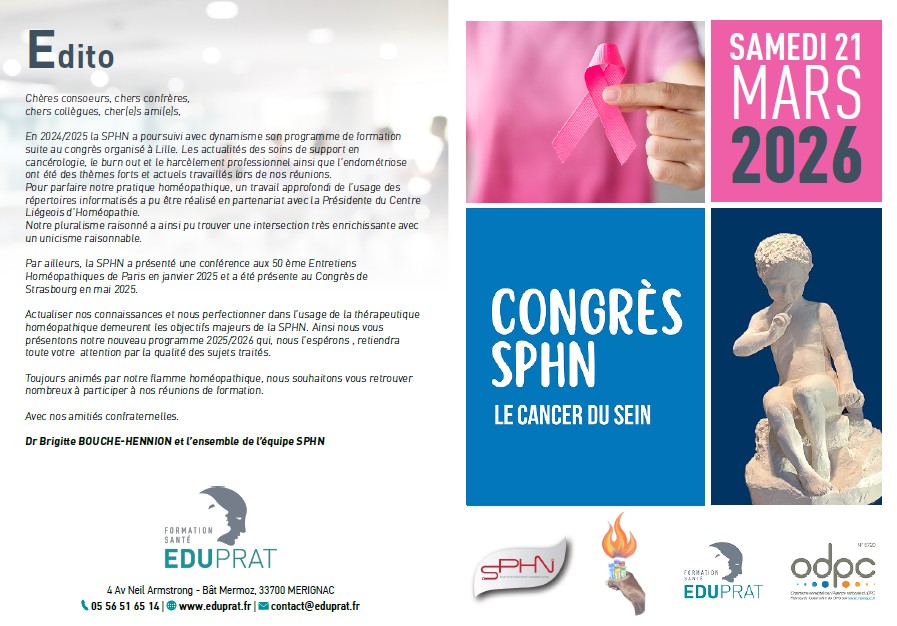 La SPHN vient d’organiser les 24 et 25 mai 2024 le 63ième congrès de la Fédération Nationale des Sociétés Médicales Homéopathiques de France FNSMHF « Les Journées Ouvertes de l’Homéopathie ». C’est dans l’agréable cadre de l’Hermitage Gantois , lieu Lire la suite ...